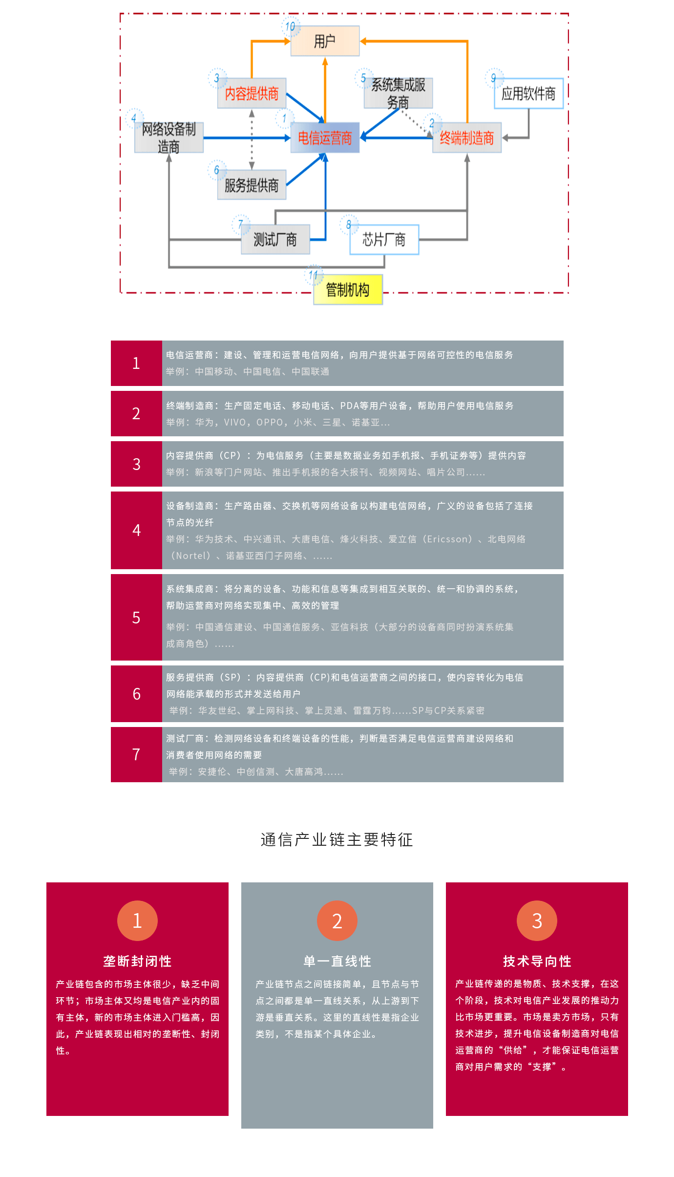 通信产业链是以电信运营商为中心的网络,电信运营商处于主导地位,拥有绝对控制权的传统电信产业链阶段在各国都经历过,只是时间长短有所差异。这个阶段,电信运营商主要提供语音及简单的数据业务,追求规模经济效应。随后,在众多推动力的作用下,传统产业链因阻碍电信深层次的发展而被打破,新的电信产业链在深度与广度上都得到了长足发展。